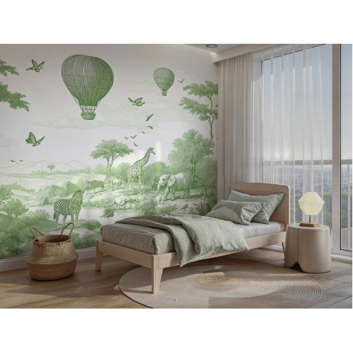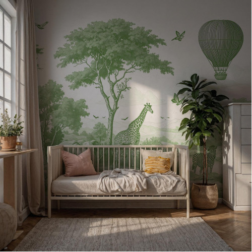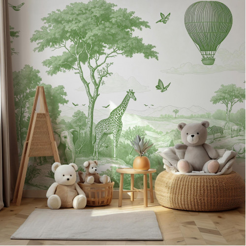 Yeşil ve Fildişi Safari Toile Kendinden Yapışkanlı Duvar Kağıdı Duvar Resmi - Özel Ölçü