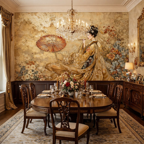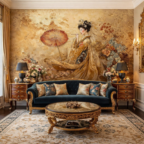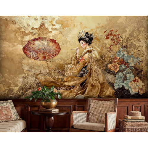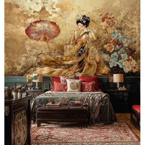 Altın Geyşa Duvar Resmi: Şinuazeri Kendinden Yapışkanlı Duvar Kağıdı